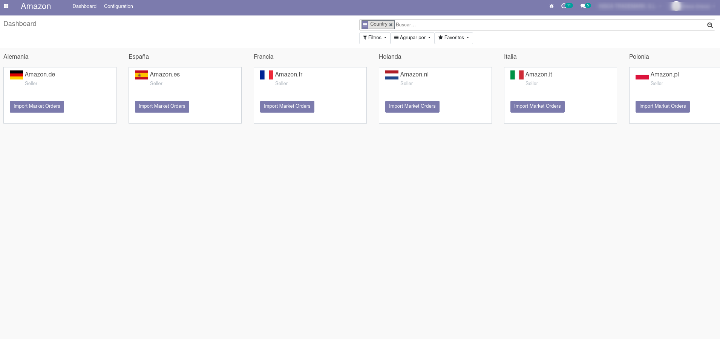 Mediante un botón es posible importar todos los marketplaces registrados en Amazon.