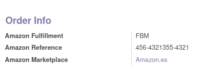 El conector que registra los pedidos contendrán la referencia de Amazon, el marketplace y el tipo de pedido (Odoo Amazon FBA/Odoo Amazon FBM).