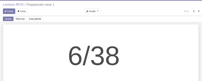 Al leer el código de barras de la transferencia a realizar o del tipo de operación se activa la lectura del arco y se intercambian los datos entre este y Odoo, mostrando el progreso en Odoo hasta agotar el tiempo de lectura o se hayan leído las etiquetas esperadas, según se configure.