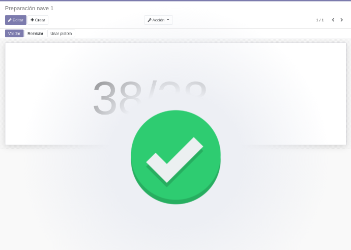 - Comprobar: simplemente comprueba que la mercancía leída es la que aparece en Odoo en el paquete o indicado.