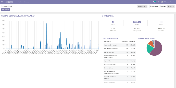 Con Odoo es muy sencillo tener un comercio electrónico con un completo programa para afiliados integrado completamente con el resto del ERP sin necesidad de terceros ni conectores.