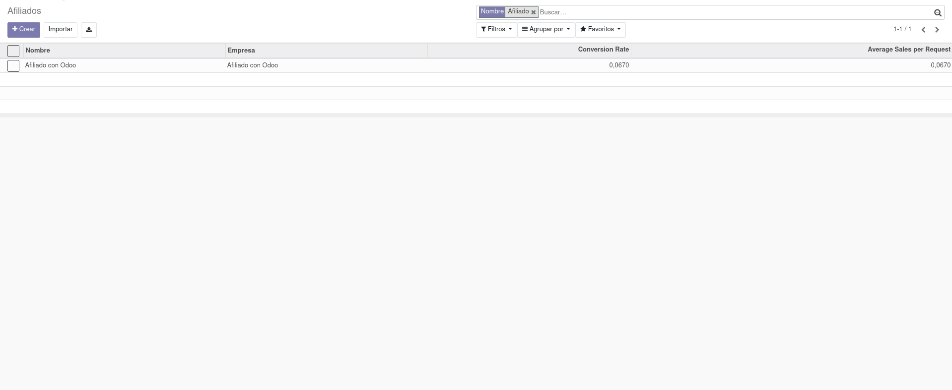Odoo permite llevar una gestión de afiliados, desde la generación de los códigos, visibilidad de las visitas, seguimiento de las